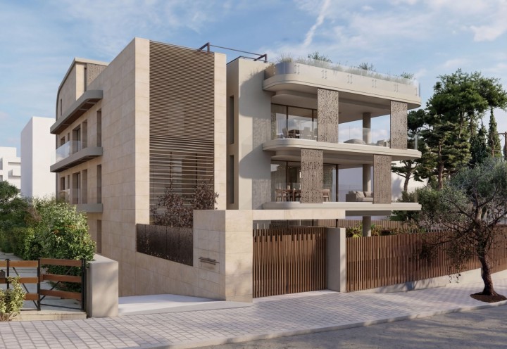 The building was designed in collaboration with the laboratory of energy studies of the University of Athens. It has a ground floor, three storeys and four underground levels with public parking spaces, on an inclined plot that faces a pedestrian way on its rear side. The building mass develops gradually around an atrium, placed in contact to one boundary of the plot.