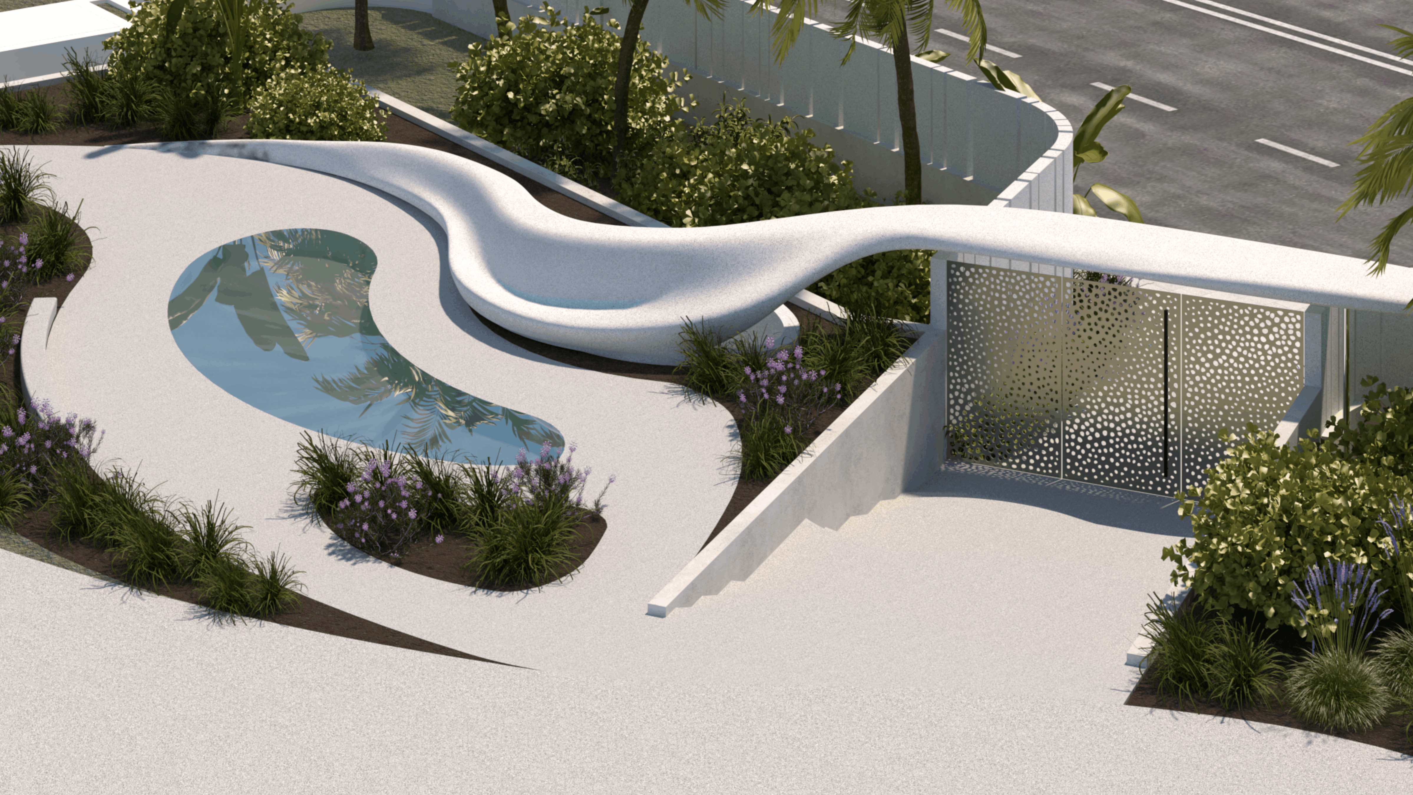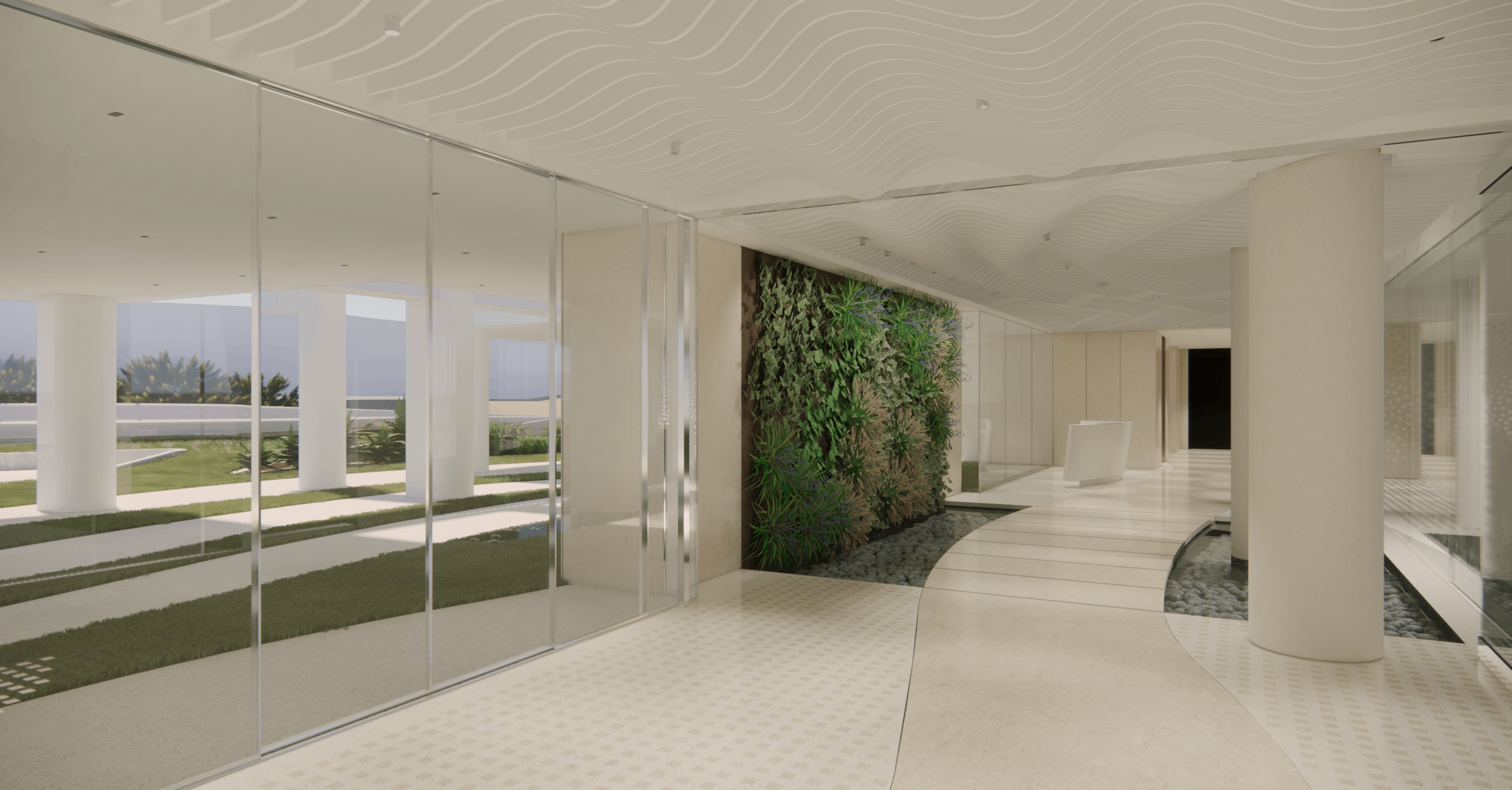 On the 3,000 sq.m. area of land in the Evryali area of the Municipality of Glyfada on Poseidonos Avenue, it is prescribed to build a complex of luxury residences, 16 apartments of which 10 are upper floors with two stairwells and two basements. Each apartment has a private swimming pool on the terrace. On the ground floor apartment are intended to have personal use of a garden with a private swimming pool.