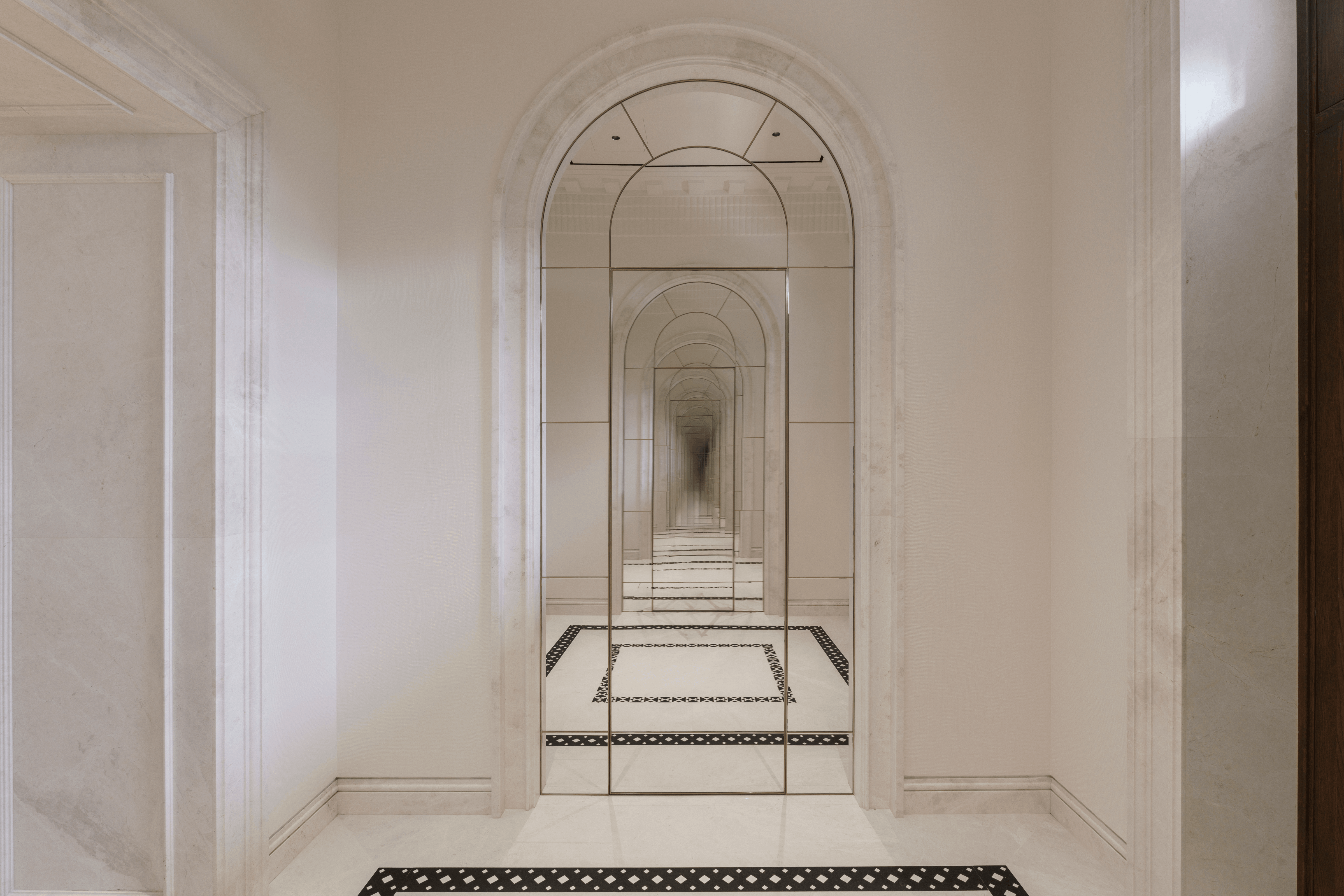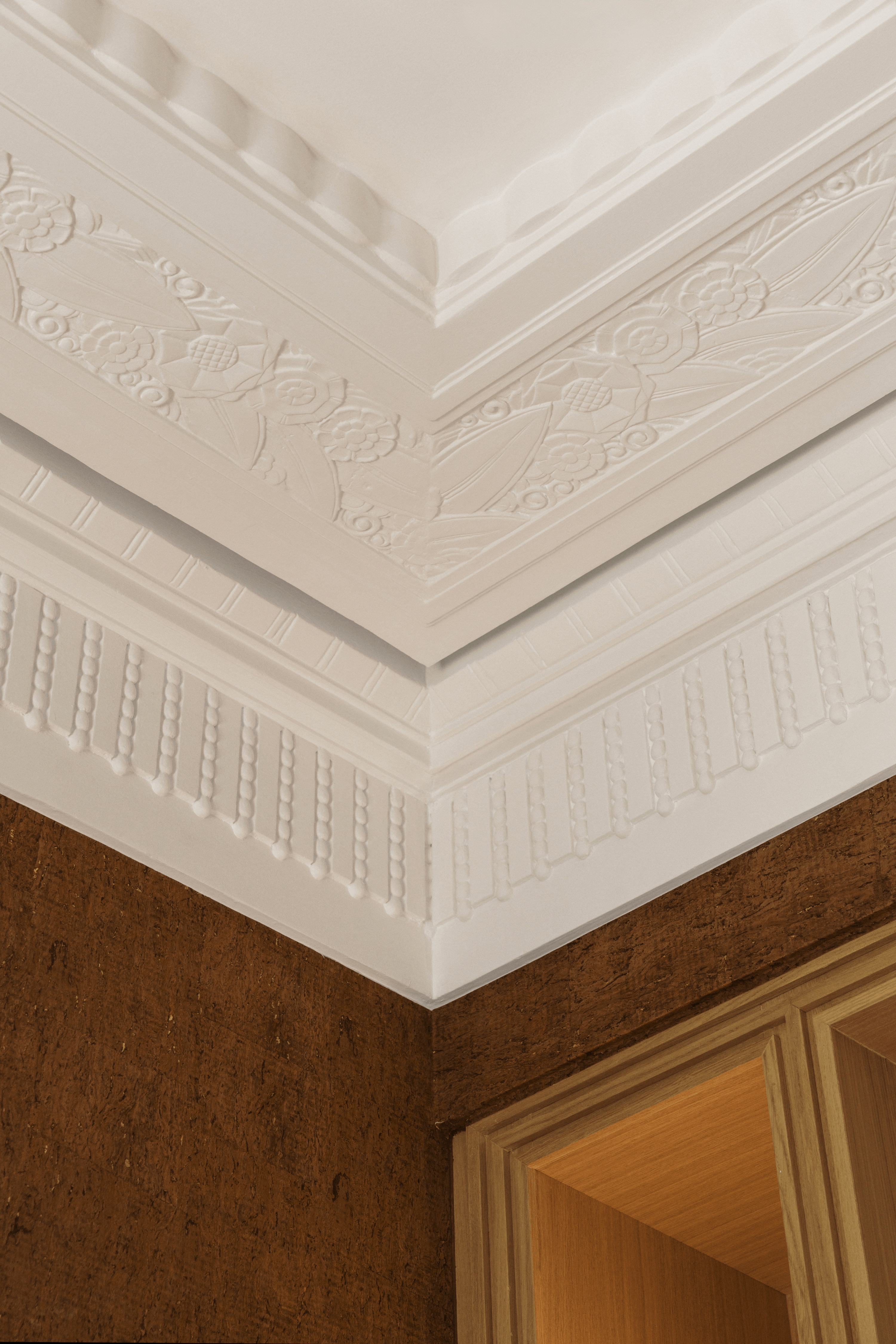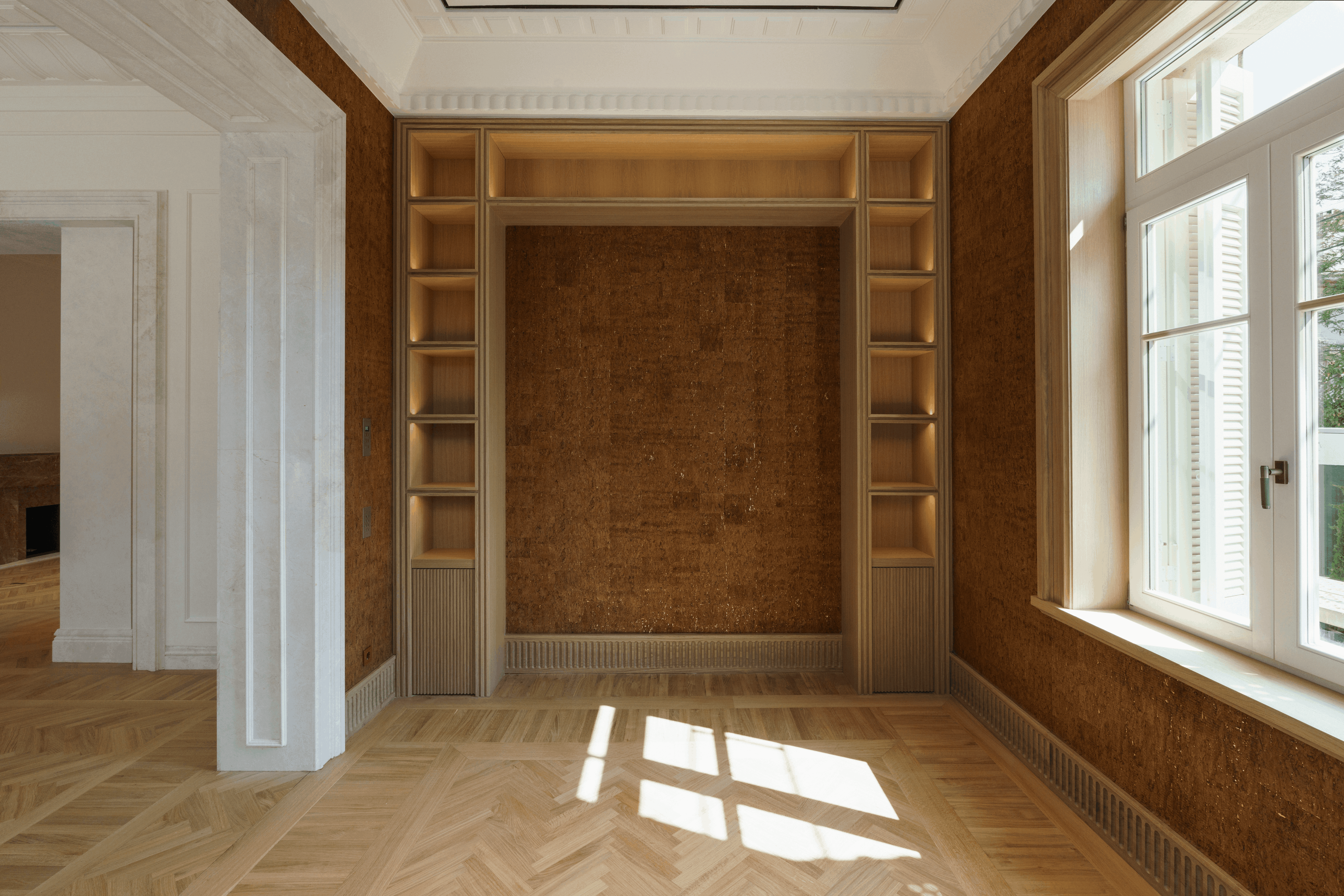Special attention is given to material selection and to highlighting the building’s qualitative characteristics. The plaster decorative elements are meticulously restored, preserving their original character, while the wooden floors are reconstructed in accordance with the initial design. In the basement areas, existing terrazzo and mosaic finishes are carefully conserved and reinstalled, reinforcing the continuity of the building’s material identity. At the same time, modern technologies such as underfloor heating are introduced, enhancing both the energy performance and functionality of the residence without compromising its aesthetic integrity.