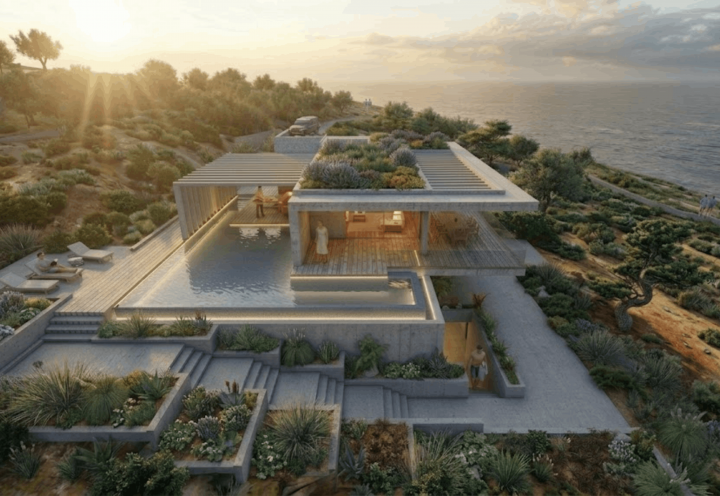 The entrance of the building is marked by a light glass shading structure, supported on tall and thin steel columns and a linear glass floor, which perspectively direct the visitor to the interior.