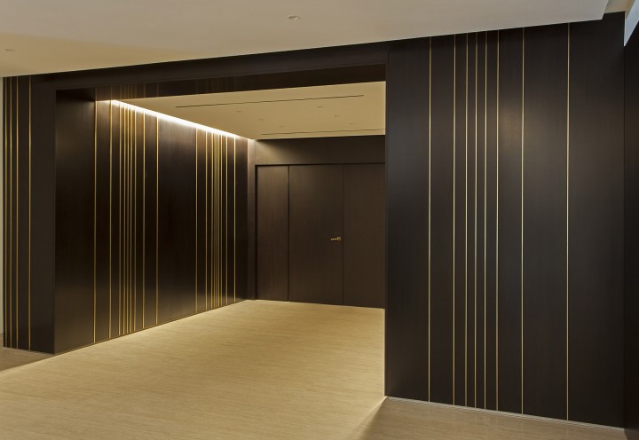 The entrance of the building is marked by a light glass shading structure, supported on tall and thin steel columns and a linear glass floor, which perspectively direct the visitor to the interior.