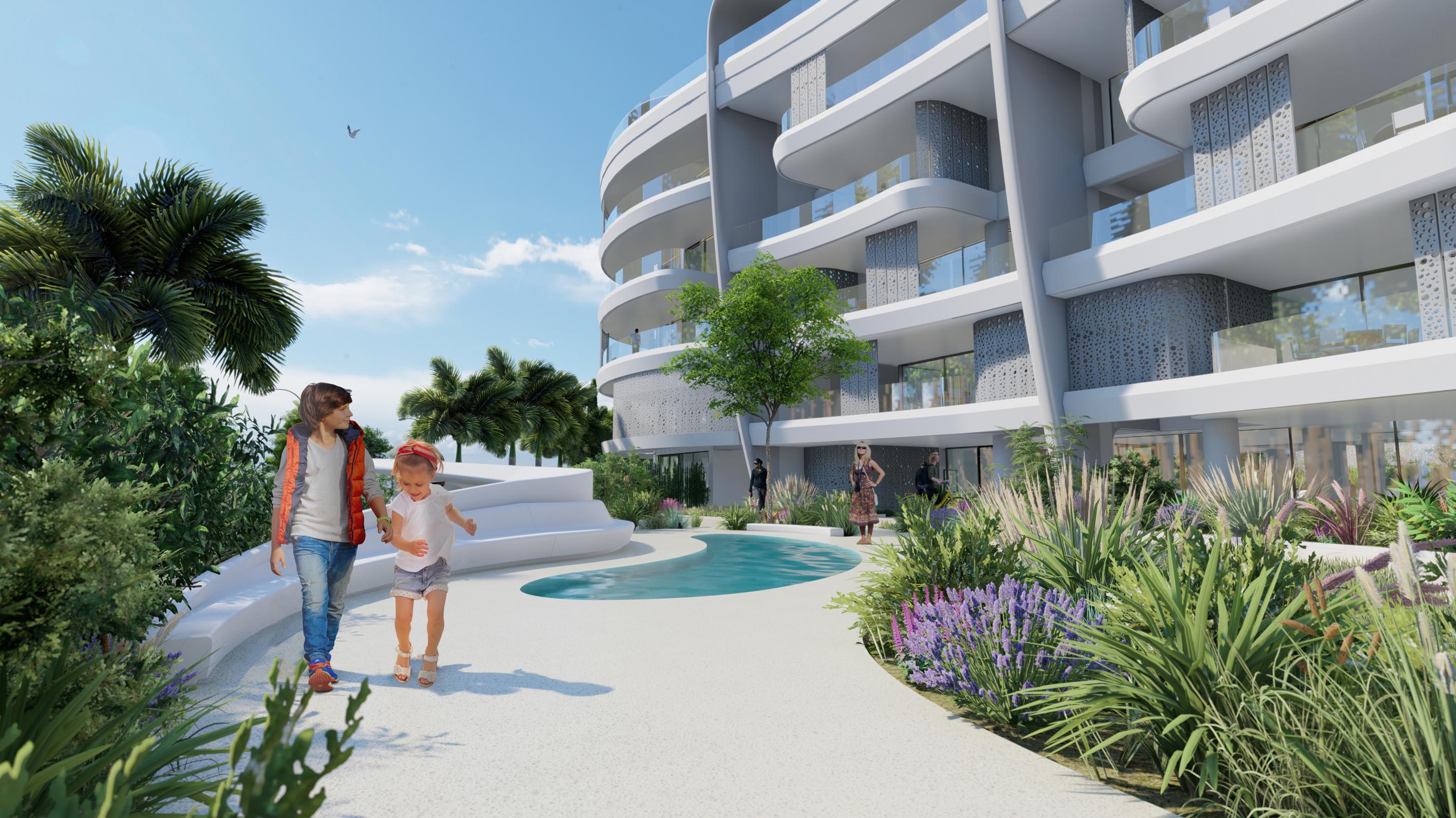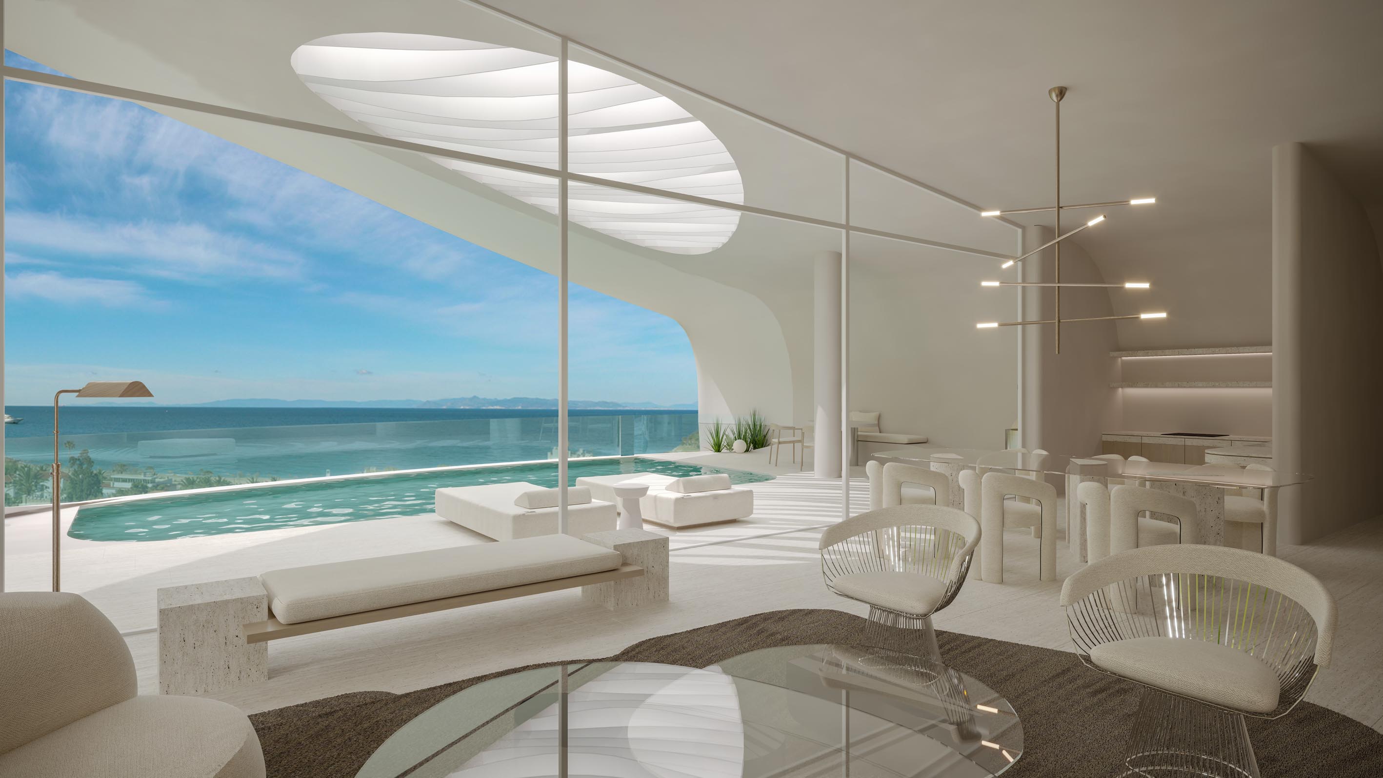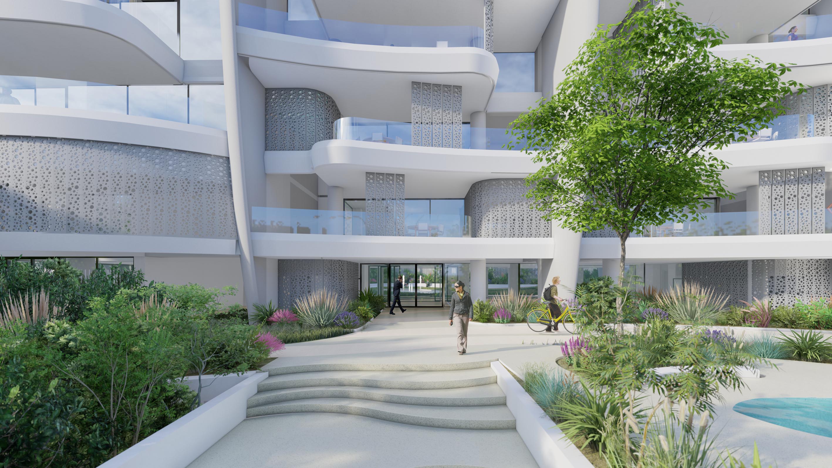 On the 3,000 sq.m. area of land in the Evryali area of the Municipality of Glyfada on Poseidonos Avenue, it is prescribed to build a complex of luxury residences, 16 apartments of which 10 are upper floors with two stairwells and two basements. Each apartment has a private swimming pool on the terrace. On the ground floor apartment are intended to have personal use of a garden with a private swimming pool.