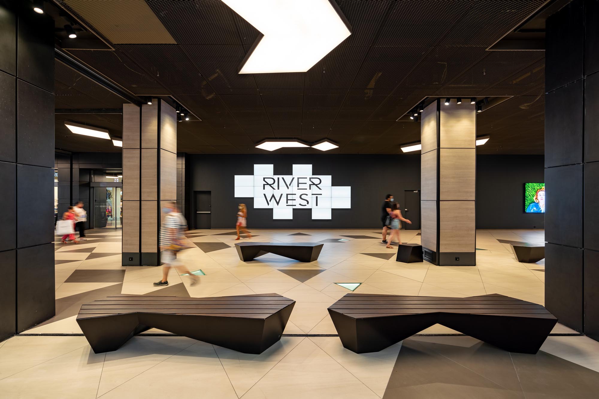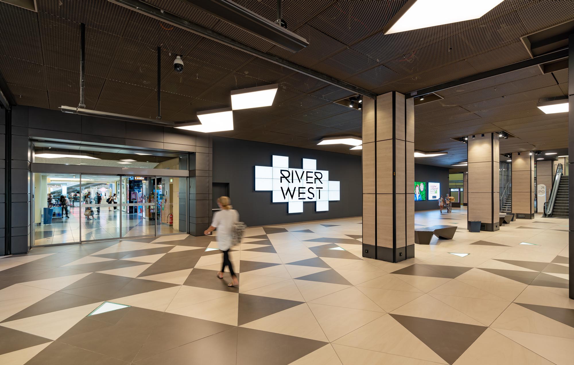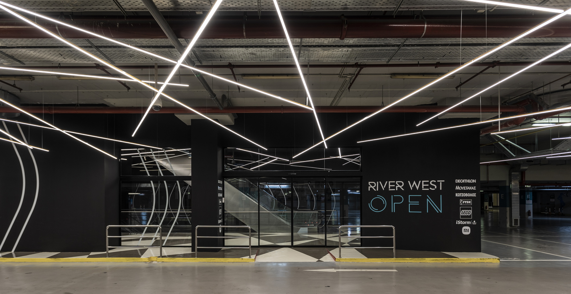 The project concerns the renovation of common areas of the Riverwest shopping center. The interventions are located mainly in the connection zones in the superstructure and the basements of the existing commercial with the areas of the new extension. These spaces embody the commercial identity and introduce a temporary and at the same time contemporary vocabulary in which carefully designed lighting plays a leading role.