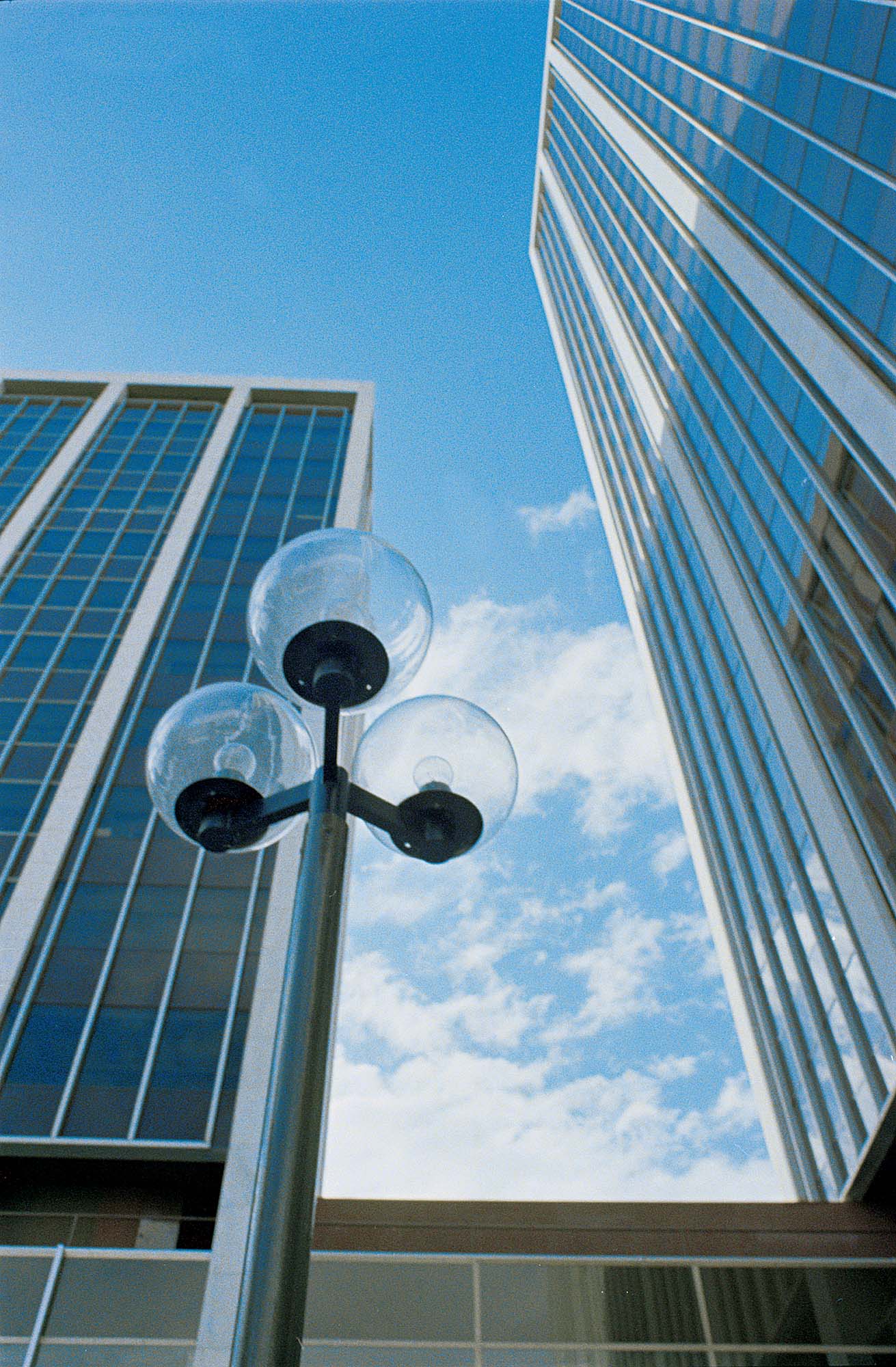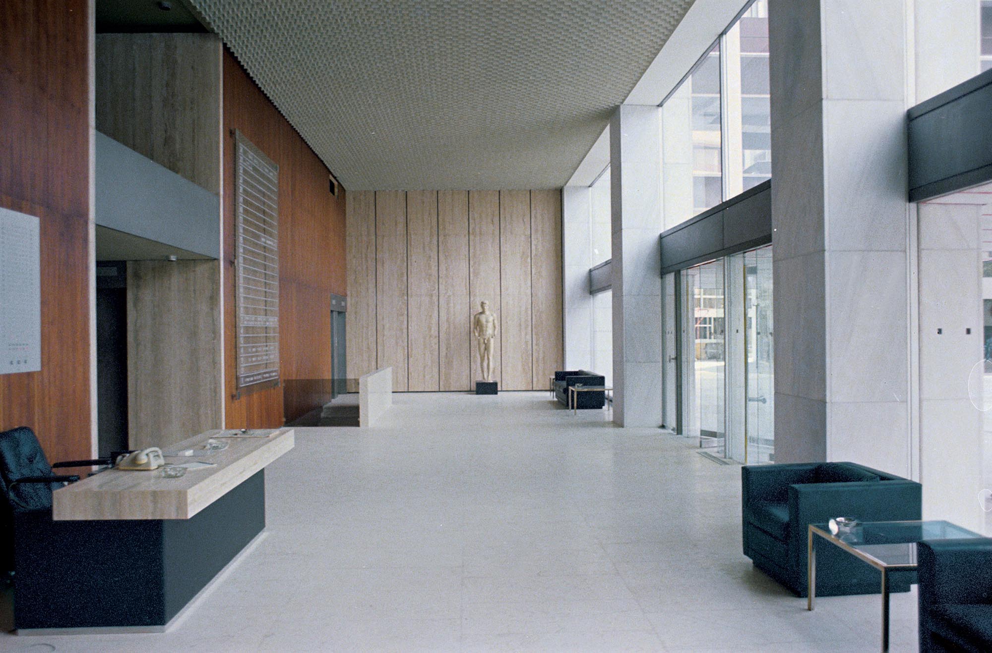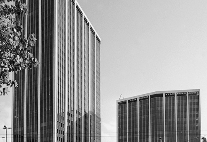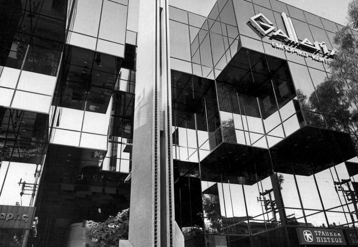 The Tower of Athens has the common typology of a skyscraper, with the central core of staircases and the surrounding office areas. What made it distinctive from the equivalent experience of an office tower abroad was the attempt to create a regionally justified form with base, body and crowning.